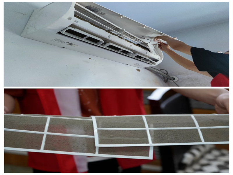 志愿者们于新实验楼下集合,制冷协会会长首先为志愿者们讲解清洗空调的步骤与注意事项,接着志愿者们分工明确,组队逐一进入办公室清洗空调,并宣传普及相关知识,如细菌会随着空调的运转,污染室内空气,人们长期处在这样的环境里,很容易染上疾病,因此一定要定期进行深度彻底的空调清洗。于是,志愿者们依次拆卸空调内机外壳、过滤网,用协会专用空调清洁剂清洁空调内部、过滤网和空调外壳,最后安装过滤网,操作娴熟一气呵成。整个过程中志愿者们热情高涨,配合默契,活动也受到广大师生的一致好评。